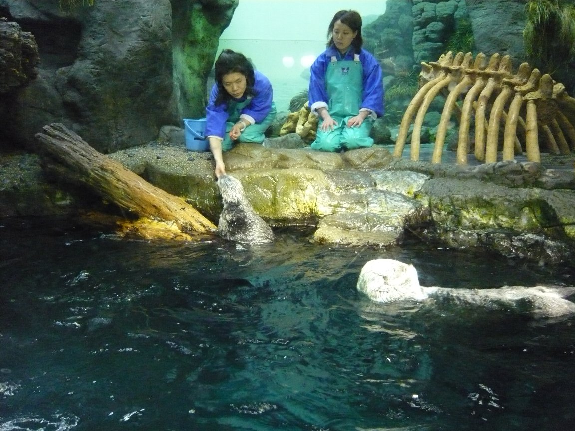 Jul 2019, dutch harbor, unalaska island, alaska, us 海遊館 アリューシャン列島 ラッコ(sea otter:イタチ科) その3 ラッコは良質の毛皮を持つために乱獲されたが、現在は保護政策によって数が回復しつつある。 ←back next→ アリューシャン列島 トップにもどる 海遊館トップにもどる ラッコは3つのグループに分かれ、アリューシャン列島のラッコはアラスカラッコ alaska sea otter / northern sea otter です。 videograhy & text :mariko sawada observation : ラッコ(海獺、enhydra lutris)は、食肉目 イタチ科ラッコ属に分類される哺乳類 11。現生種では本種のみでラッコ属を構成する 4。 北アメリカ大陸から千島列島の沿岸にかけて棲息。 毛皮を採取するため乱獲され、日本では20世紀初頭にいったん絶滅した。 Aleut )またはアリュート族は、アラスカとカムチャツカの間にあるアリューシャン列島の先住民族である。自身の名称はウナンガン(unangax , unangan, unanga)。 狩猟、武器の作成、ボートの組み立て、織物はアレウトの伝統的工芸の一つである。 ラッコは3つのグループに分かれ、アリューシャン列島のラッコはアラスカラッコ alaska sea otter / northern sea otter です。 videograhy & text :mariko sawada observation : Jul 2019, dutch harbor, unalaska island